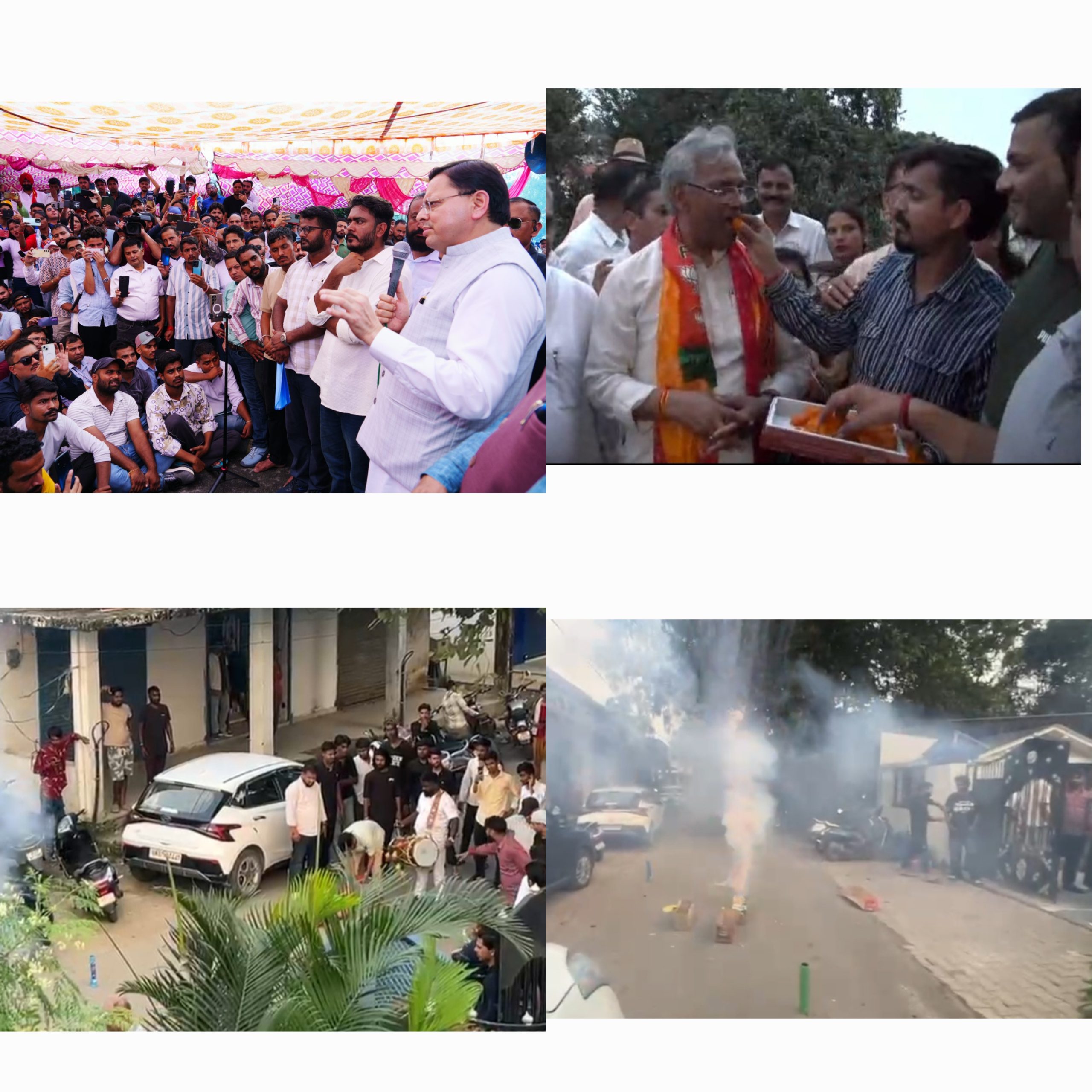 मगर सोशल में वीडियो आये कि पूर्व CM त्रिवेंद्र सिंह रावत के घर कार्यकर्ता जुटे, आतिशबाजी हुई, मिठाइयाँ बंटी पूर्व CM को भी खिलाई गई। जिसके बाद सोशल मीडिया पर लोग फट पड़े—“बेगानी शादी में अब्दुल्ला दीवाना।” और न जाने लोग सवाल उठाते हुए क्या-क्या लिखने लगे।