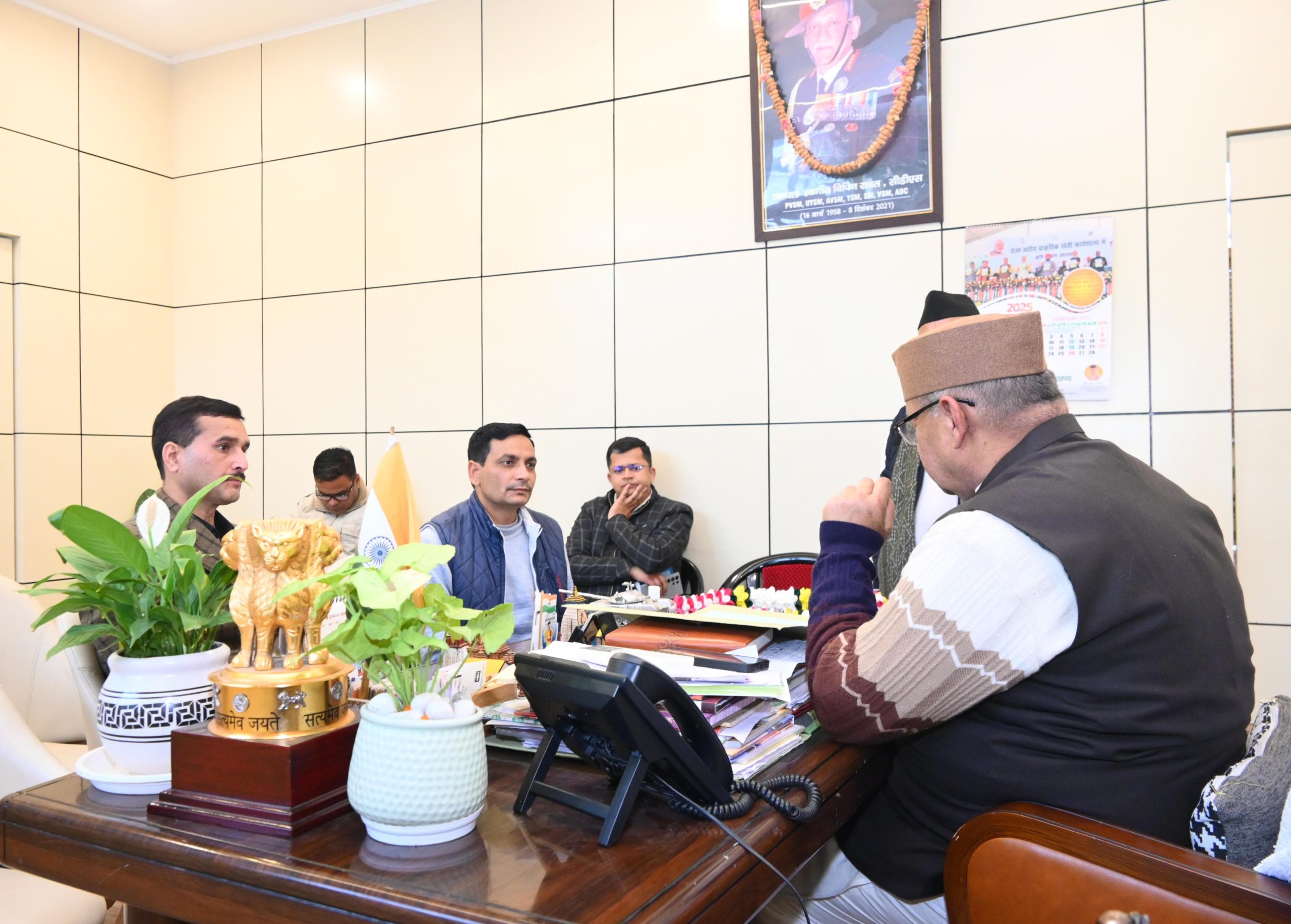 देहरादून स्थित कैम्प कार्यालय में रेशम विभाग की बैठक के दौरान कृषि एवं कृषक कल्याण मंत्री गणेश जोशी ने रेशम कृषि मेले की तैयारियों को अंतिम रुप दिया
