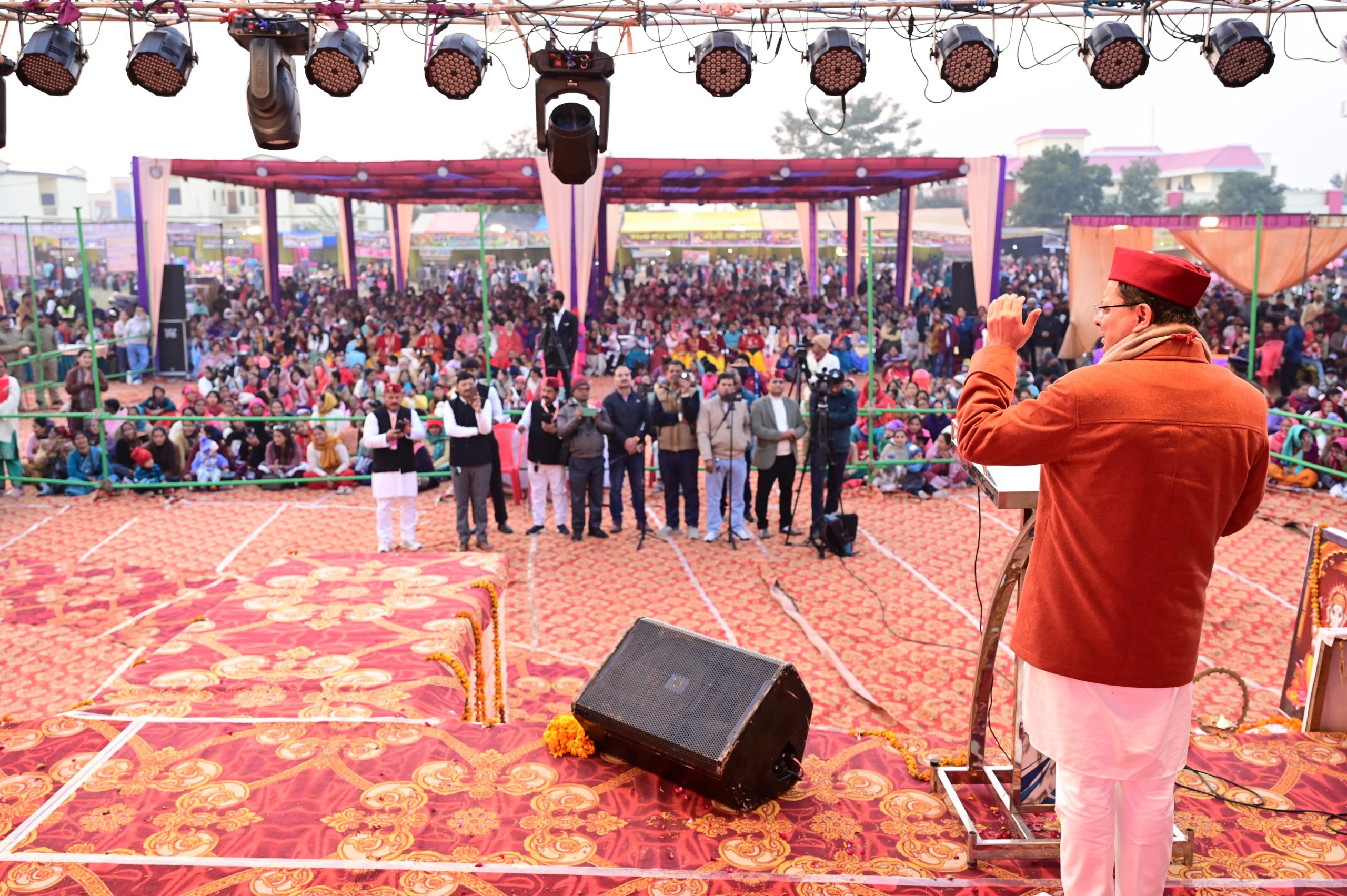 मुख्यमंत्री ने मातृशक्ति को विशेष रूप से सम्बोधित करते हुए कहा कि उत्तराखंड की संस्कृति की असली वाहक आप हैं। आपके संस्कार, आपकी मेहनत और आपका त्याग ही हमारे समाज की सबसे बड़ी ताकत है। इसलिए महिला सशक्तिकरण हमारे लिए केवल नारा नहीं, बल्कि संकल्प है। उन्होंने कहा कि जो लोग दशकों तक सिर्फ वादे करते रहे, वे आज हमारी उपलब्धियों से घबराए हुए हैं, लेकिन मैं, आज इस मंच के माध्यम से ये स्पष्ट कर देना चाहता हूं कि “ये देवभूमि है, यहां विकास भी होगा, हमारी संस्कृति भी बचेगी और राष्ट्रविरोधी लोगों को यहां से अंतोतगत्वा जाना ही पड़ेगा”। हमारा लक्ष्य उत्तराखंड को देश का सर्वश्रेष्ठ राज्य बनाना है। और ये लक्ष्य कोई नारा नहीं, बल्कि हमारा “विकल्प रहित संकल्प” है और मुझे पूर्ण विश्वास है कि हमारे इस संकल्प को सिद्धि तक पहुंचाने के लिए आप सभी इसी प्रकार हमारी सरकार का सहयोग करते रहेंगे।