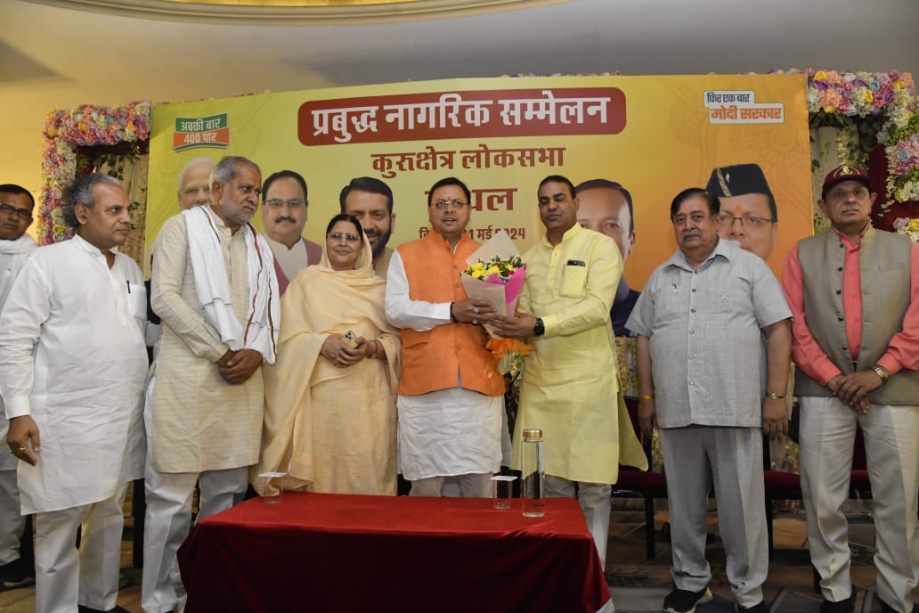 मुख्यमंत्री धामी ने कैथल, हरियाणा में संसदीय क्षेत्र कुरूक्षेत्र से भाजपा प्रत्याशी नवीन जिन्दल के पक्ष में आयोजित प्रबुद्ध नागरिक सम्मेलन में किया प्रतिभाग