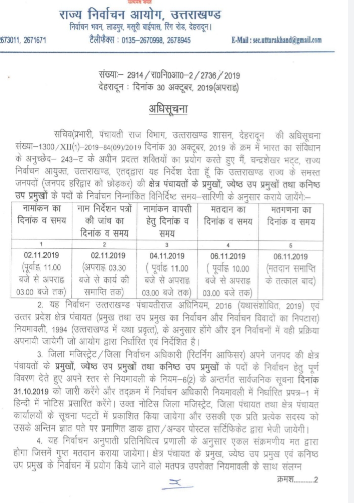 उत्तराखंड : सभी 12 जिलों में 7 नवंबर को होगा जिला पंचायत अध्यक्ष के लिए मतदान
