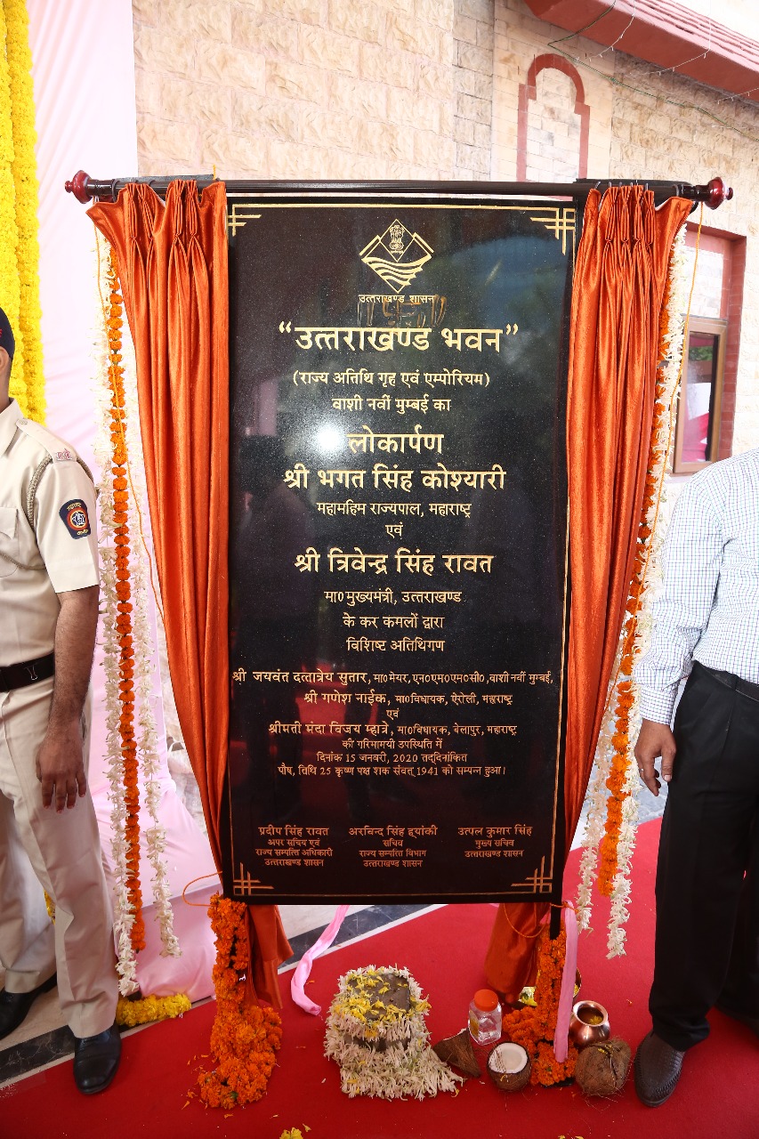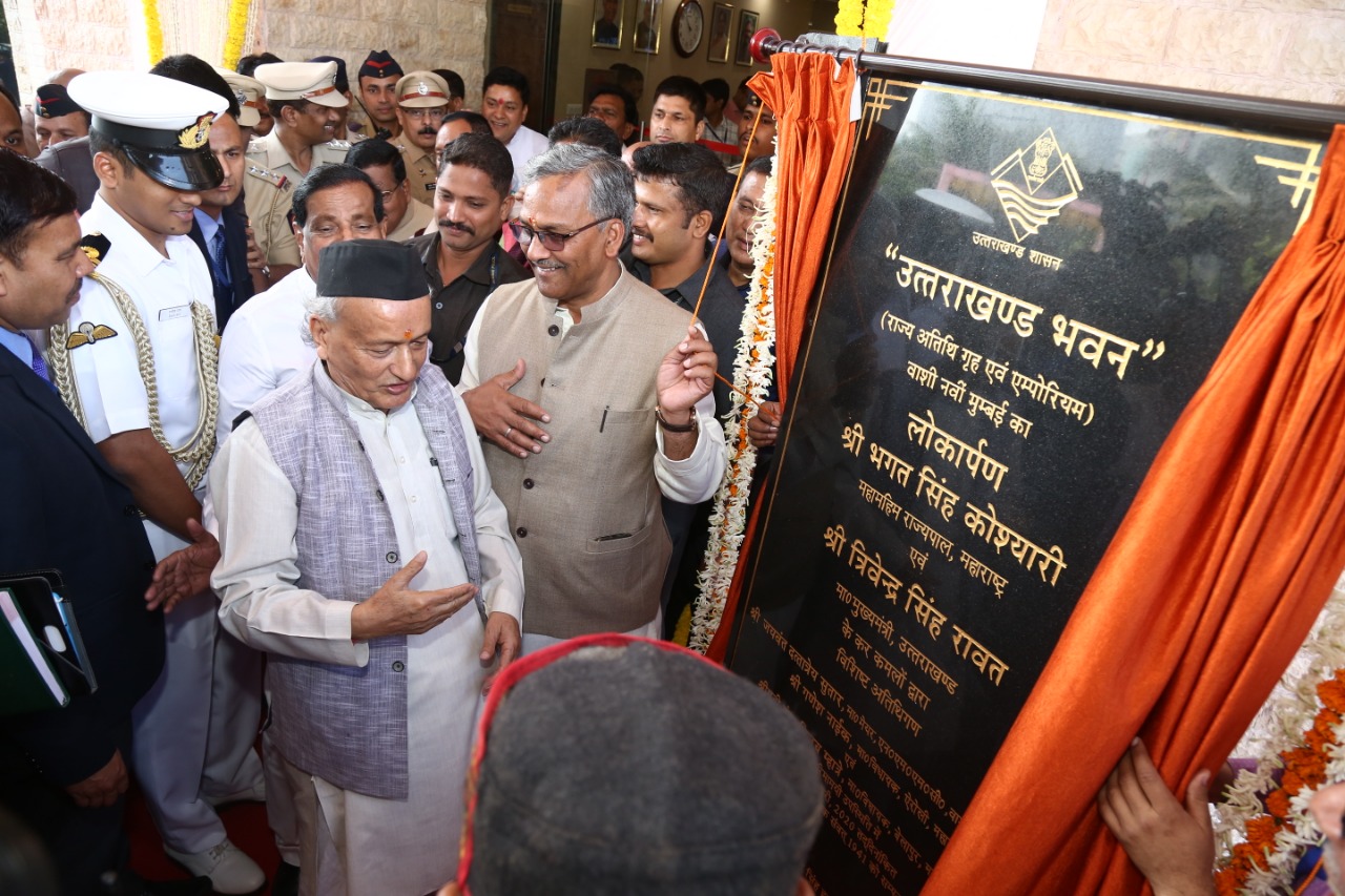 राज्यपाल महाराष्ट्र श्री भगत सिंह कोश्यारी और मुख्यमंत्री उत्तराखण्ड त्रिवेन्द्र सिंह रावत ने बुधवार को नवी मुम्बई में संयुक्त रूप से राज्य अतिथि गृह एवं एम्पोरियम ‘‘उत्तराखण्ड भवन‘‘ का लोकार्पण किया।