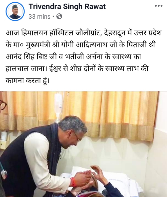 मुख्यमंत्री त्रिवेंद्र रावत पहुँचे हिमालयन हॉस्पिटल जौलीग्रांट जाना मुख्यमंत्री योगी आदित्यनाथ जी के पिता जी आनंद बिष्ट का हालचाल
