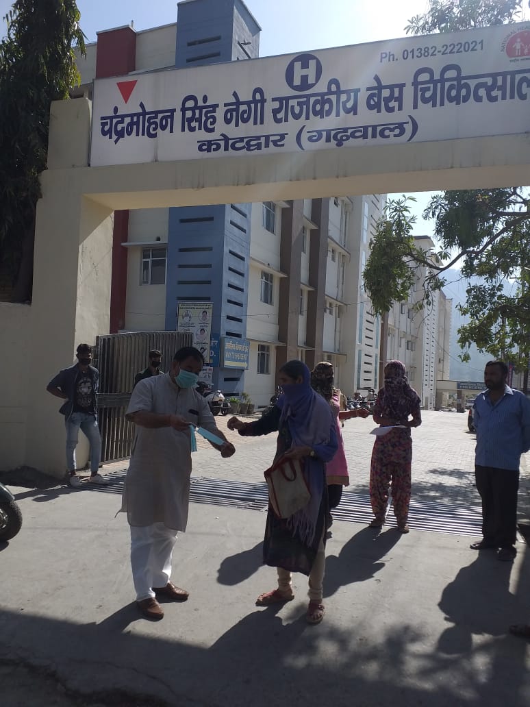 कल कोतवाली कोटद्वार में पुलिस कर्मियों, स्वास्थ्य कर्मियों तथा नगर निगम के कर्मचारियों को, मन्त्री हरक सिंह रावत ने खुद (जो कोरोना बिमारी के चलते अपनी आवश्सक सेवाएं दे रहें ) उनको एंटी वायरस प्रोटेक्टिव सूट, 5 हजार मास्क, 2500 सैनिटाइजर, हैंड ग्लव्स बाटे।