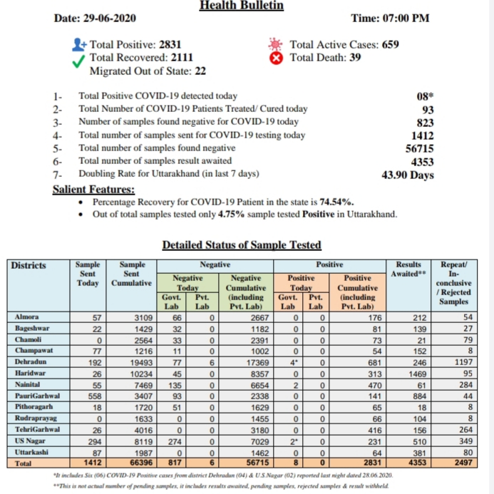 और अभी तक उत्तराखंड राज्य में 659 लोगों का इलाज जारी है