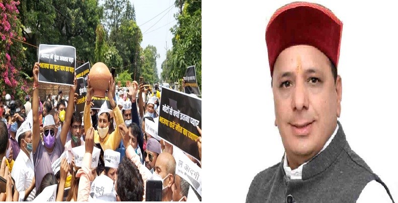 दूसरी और भाजपा के प्रदेश मीडिया प्रभारी मनवीर सिंह चौहान ने प्रदर्शन पर कहा कि आप प्रदेश में अपना राजनैतिक अस्तित्व तलाश रही है और तरह तरह के ढोंग और प्रलाप कर रही है। जबकि कोरोना काल में उसकी सच्चाई  सामने आ चुकी है। कथित ईमानदारी का दम्भ भरने वाली पार्टी के भ्रमित कर्यकर्ताओ को कोरोना के दौरान दिल्ली की अव्यवस्थाओं को लेकर अपने नेतृत्व से पूछना चाहिए। उन्होंने कहा कि दिल्ली में टेस्टिंग सबसे कम और यहाँ तक की फर्जीवाड़ा तक सामने आया। वहीं संक्रमण और डेथ रेट के मामलो में दिल्ली टॉप पर है।