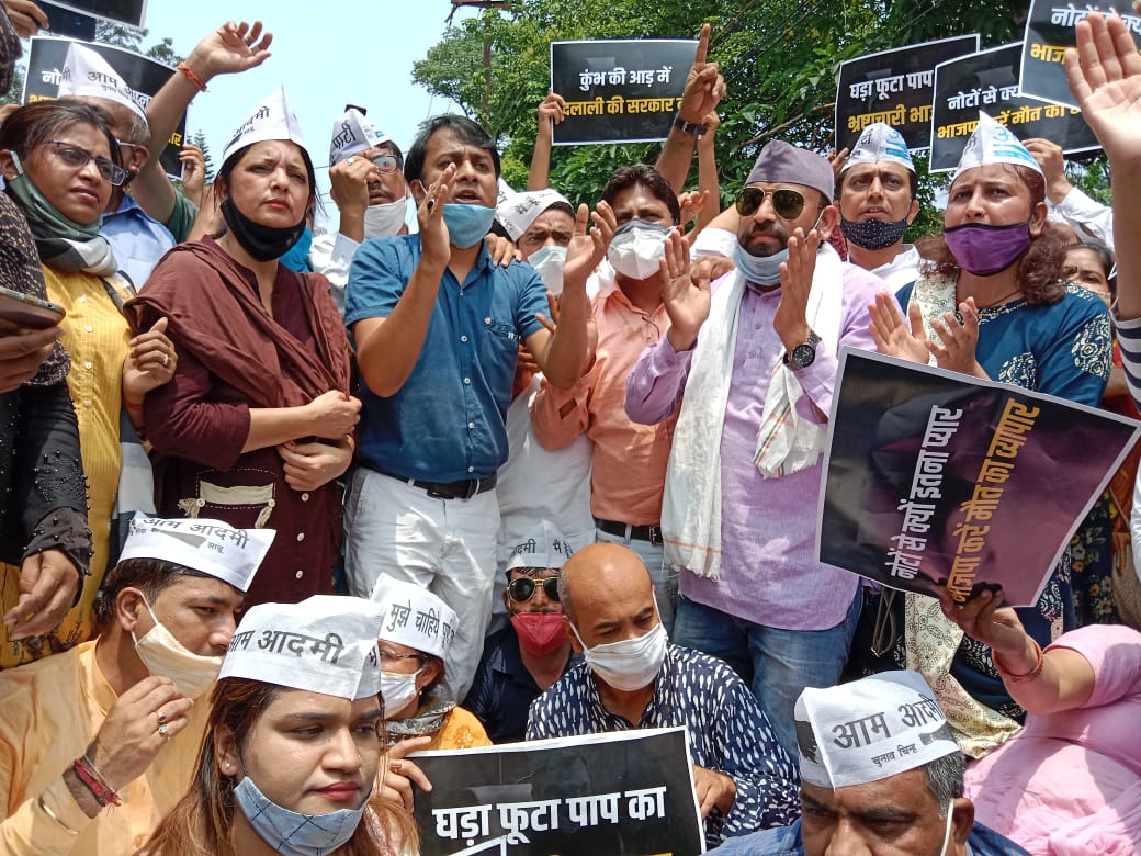 इस दौरान आप उपाध्यक्ष विशाल चौधरी ने कहा कि, अब बीजेपी के पाप का घडा पूरी तरह भर चुका है। उन्होंने कहा कि, बीजेपी ने उत्तराखंड को लूट का अड्डा बना दिया है। कुंभ में बीजेपी नेताओं की सांठगांठ से एक निजी लैब को कोरोना जांच का ठेका दिया गया ,जिससे फर्जी जाचों के नाम पर लाखों लोगों की जान से खिलवाड करते पूरे विश्व में उत्तराखंड की साख को बट्टा लगाया। उन्होंनें कहा प्रदेश का स्वास्थ्य महकमा खुद मुख्यमंत्री के पास है इसलिए इस घोटाले के बाद नैतिक रूप से उनको इस्तीफा दे देना चाहिए।