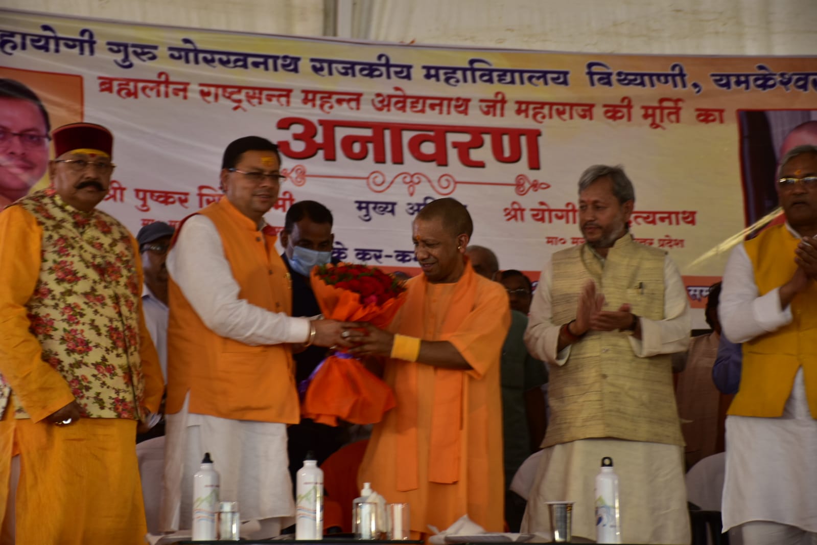 इस अवसर पर मुख्यमंत्री पुष्कर सिंह धामी एवं उत्तर प्रदेश के मुख्यमंत्री योगी आदित्यनाथ ने महायोगी गुरु गोरखनाथ राजकीय महाविद्यालय, बिध्याणी, यमकेश्वर में ब्रह्मालीन राष्ट्रसंत महंत अवैद्यनाथ जी महाराज की मूर्ति का अनावरण भी किया।