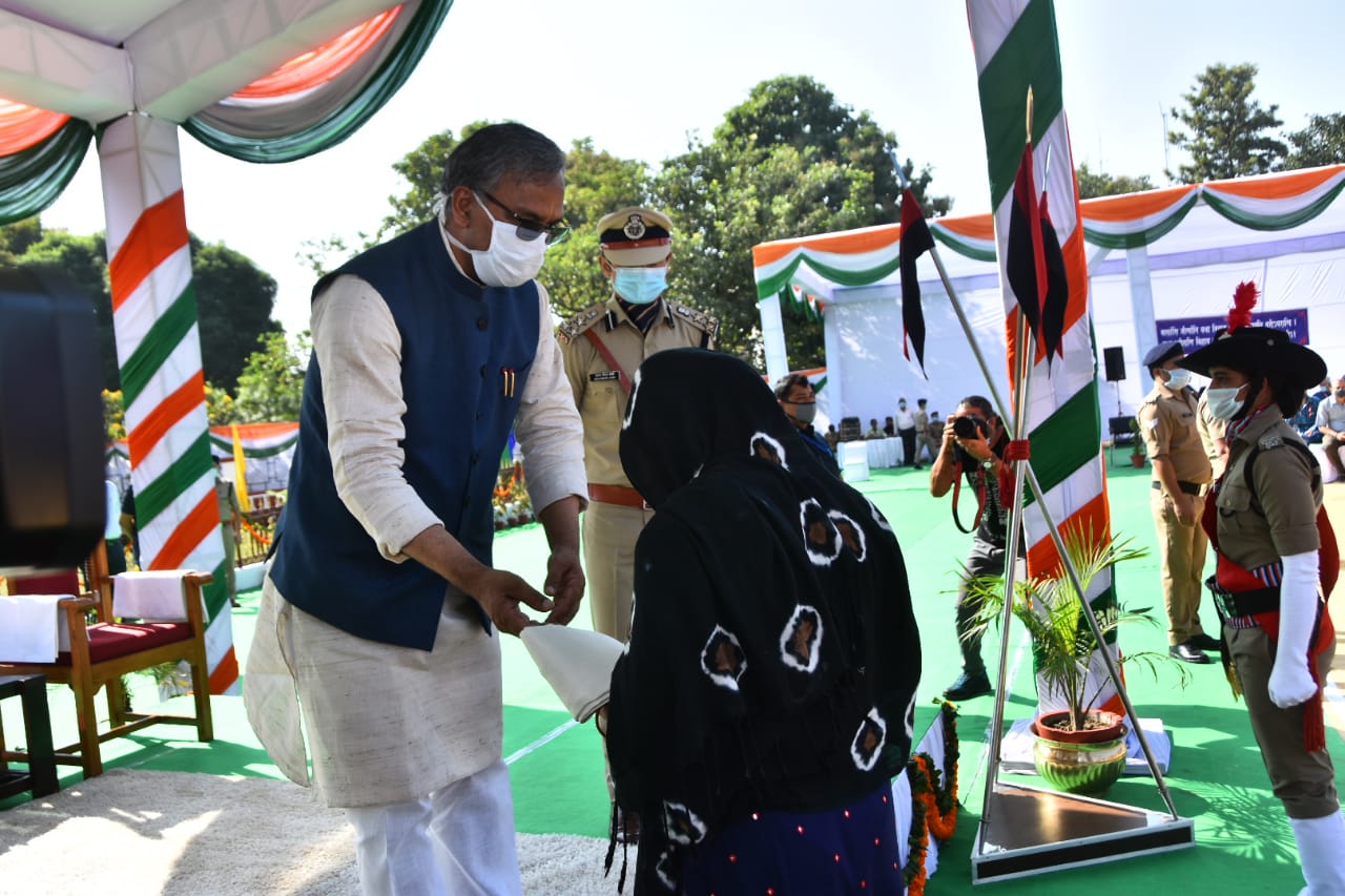 मुख्यमंत्री त्रिवेन्द्र सिंह रावत ने बुधवार को पुलिस लाईन, देहरादून में पुलिस स्मृति परेड में प्रतिभाग किया। मुख्यमंत्री ने शहीद स्मारक पर पुलिस एवं अर्द्ध सैन्य बलों के शहीदों को पुष्प चक्र अर्पित कर श्रद्धांजलि दी। इस अवसर पर मुख्यमंत्री ने उत्तराखण्ड के शहीद पुलिस व अर्द्धसैन्य बलों के परिजनों को सम्मानित भी किया। कार्यक्रम को संबोधित करते हुए मुख्यमंत्री