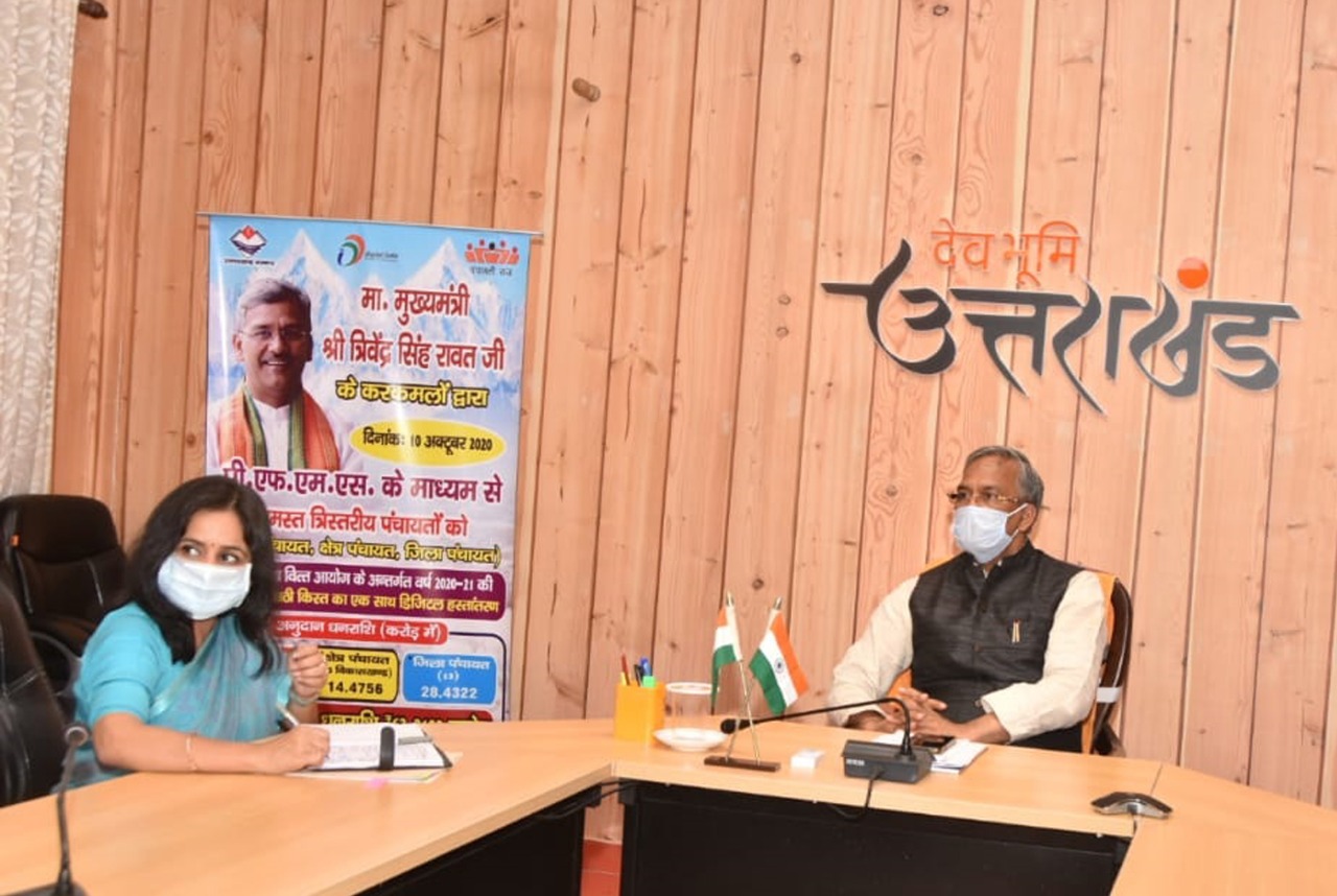 मुख्यमंत्री त्रिवेन्द्र सिंह रावत ने शनिवार को मुख्यमंत्री आवास में पंचायतों को राज्य वित्त आयोग के अन्तर्गत प्राप्त धनराशि को डिजिटल माध्यम से प्रदेश के 7791 ग्राम पंचायतों,