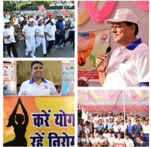 मुख्यमंत्री पुष्कर सिंह धामी ने सोमवार को अन्तर्राष्ट्रीय योग दिवस के पूर्व दिवस पर “रन फॉर योग” कार्यक्रम के तहत घण्टाघर से एम०के०पी० चौक तक आयोजित दौड़ में शामिल होकर योग के प्रति युवाओं एवं जनता को जागरूकता का संदेश दिया।