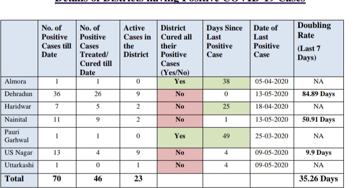उत्तराखंड में कोरोना पॉजिटिव मरीजों की संख्या बढ़कर 70 हुई