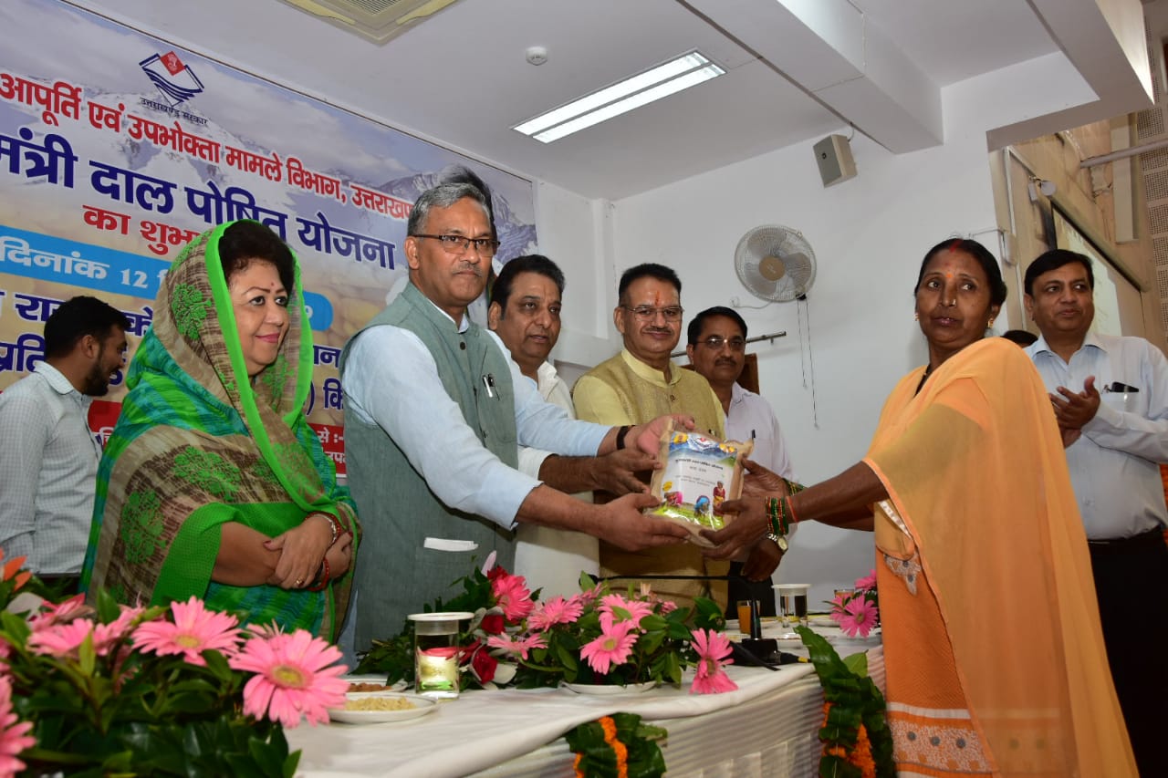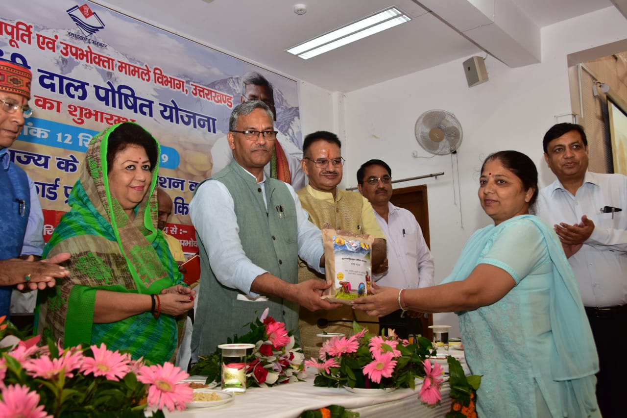 मुख्यमंत्री दाल पोषित योजना का आज शुभारंभ हुवा मुख्यमंत्री त्रिवेन्द्र सिंह रावत ने सीएम आवास में आयोजित कार्यक्रम में लाभार्थियों को दाल के पैकेट वितरित कर योजना का आज शुभारंभ किया। बता दे कि प्रत्येक राशनकार्ड धारक को दो किलो दाल प्रति माह कम कीमत पर उपलब्ध कराई जाएगी।
