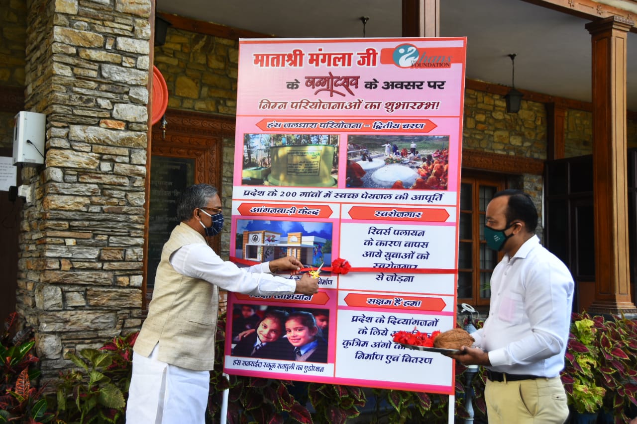 मुख्यमंत्री त्रिवेन्द्र सिंह रावत ने माता मंगला जी के जन्मदिवस पर सीएम आवास में हंस फाउंडेशन की उत्तराखंड के लिए 105 करोङ रूपए की विभिन्न परियोजनाओं का शुभारंभ किया।