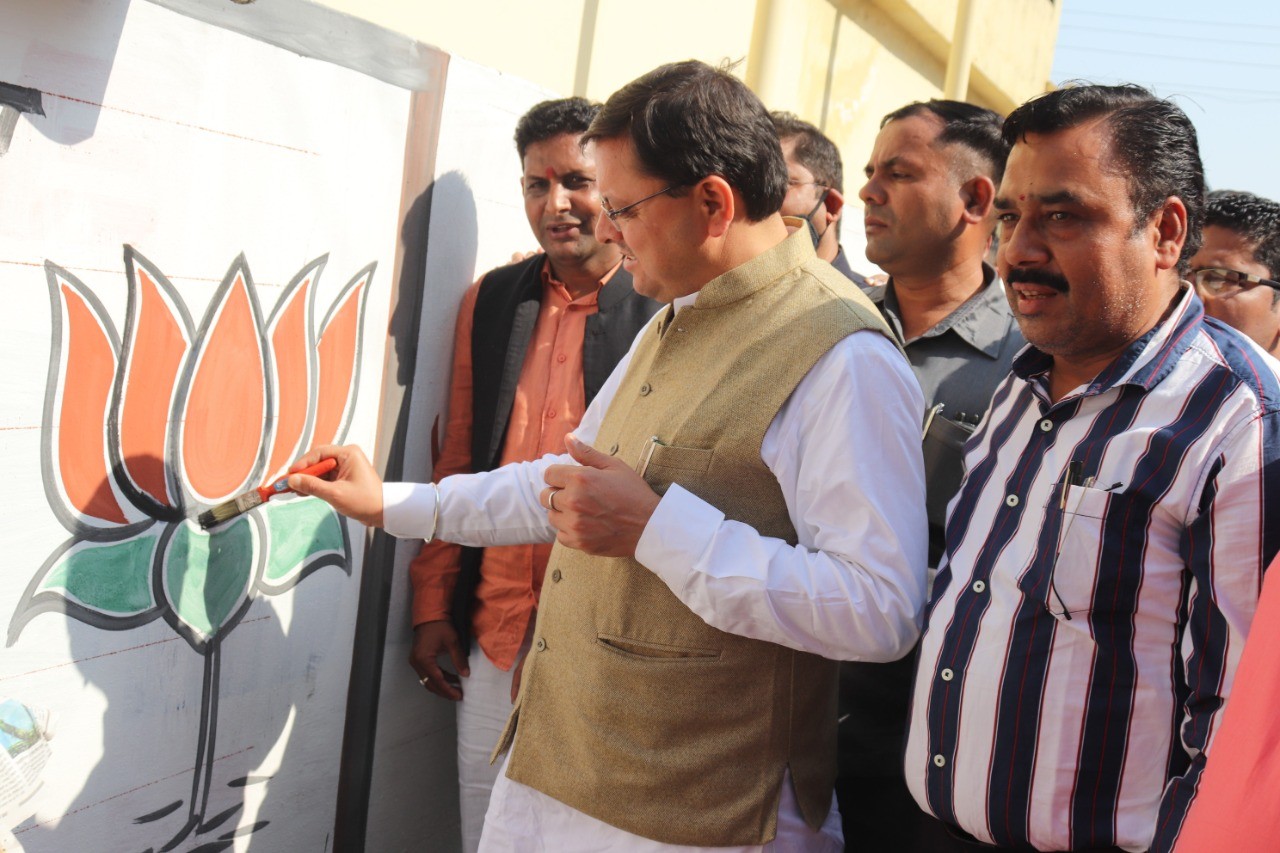 धामी ने अपने आवास के पास चल रहे पेंटिंग कार्य मे प्रतिभाग करते हुए पेंटिंग भी की।