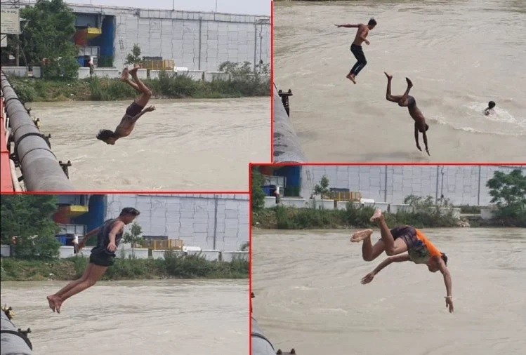 गंगनहर में सात हजार क्यूसेक छोड़ा जा रहा है। यहां पर पुल की ऊंचाई करीब 30 फीट है। युवाओं में पुल से छलांग लगाने की प्रतिस्पर्द्धा देखने को मिली। पुल से हाईवे वाले चौराहे पर कई पुलिस कर्मियों की ड्यूटी है। लेकिन पुलिस कर्मियों ने भी युवाओं को रोकने की जहमत नहीं उठाई।बता दें कि बंगाल की खाड़ी और अरब सागर से आ रहीं नम हवाओं के अचानक गुम होने से राज्य में पहाड़ से लेकर मैदान तक मौसम का मिजाज एक बार फिर बदल गया है। जिसके चलते अगले दो दिनों तक लोगों को जबरदस्त गर्मी का सामना करना पड़ेगा।