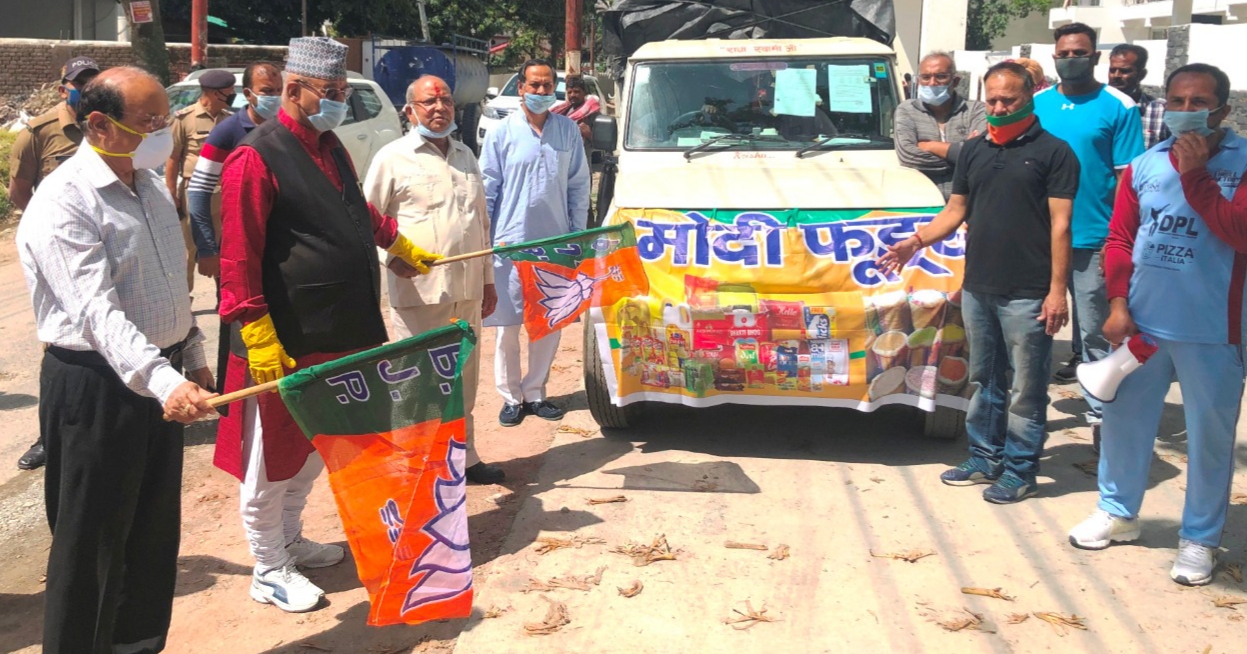 भारतीय जनता पार्टी के प्रदेश अध्यक्ष बंशीधर भगत ने लॉक डाउन के दौरान जरूरतमंदों की मदद के लिए मोदी फूड्स के पैकेट के रूप में 10 वाहनों को हरी झंडी दिखा कर मसूरी विधान सभा के विभिन्न क्षेत्रों में रवाना किया।