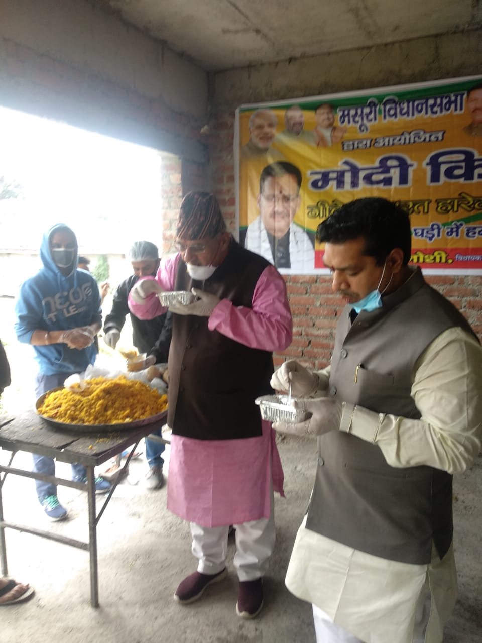 विधायक गणेश जोशी ने कहा कि मुझे गर्व है कि मैं भारतीय जनता पार्टी का कार्यकर्ता हॅू और भाजपा का कार्यकर्ता हमेशा जनता के लिए, जनता के बीच रहकर कार्य करता है। उन्होनें बताया कि 24 मार्च से उनके द्वारा 6 मोदी किचन संचालित की जा रही हैं, जिसमें प्रत्येक दिवस 7000 लोग खाना खा रहे हैं। उन्होंने बताया कि एक हजार पैकेट मसूरी,