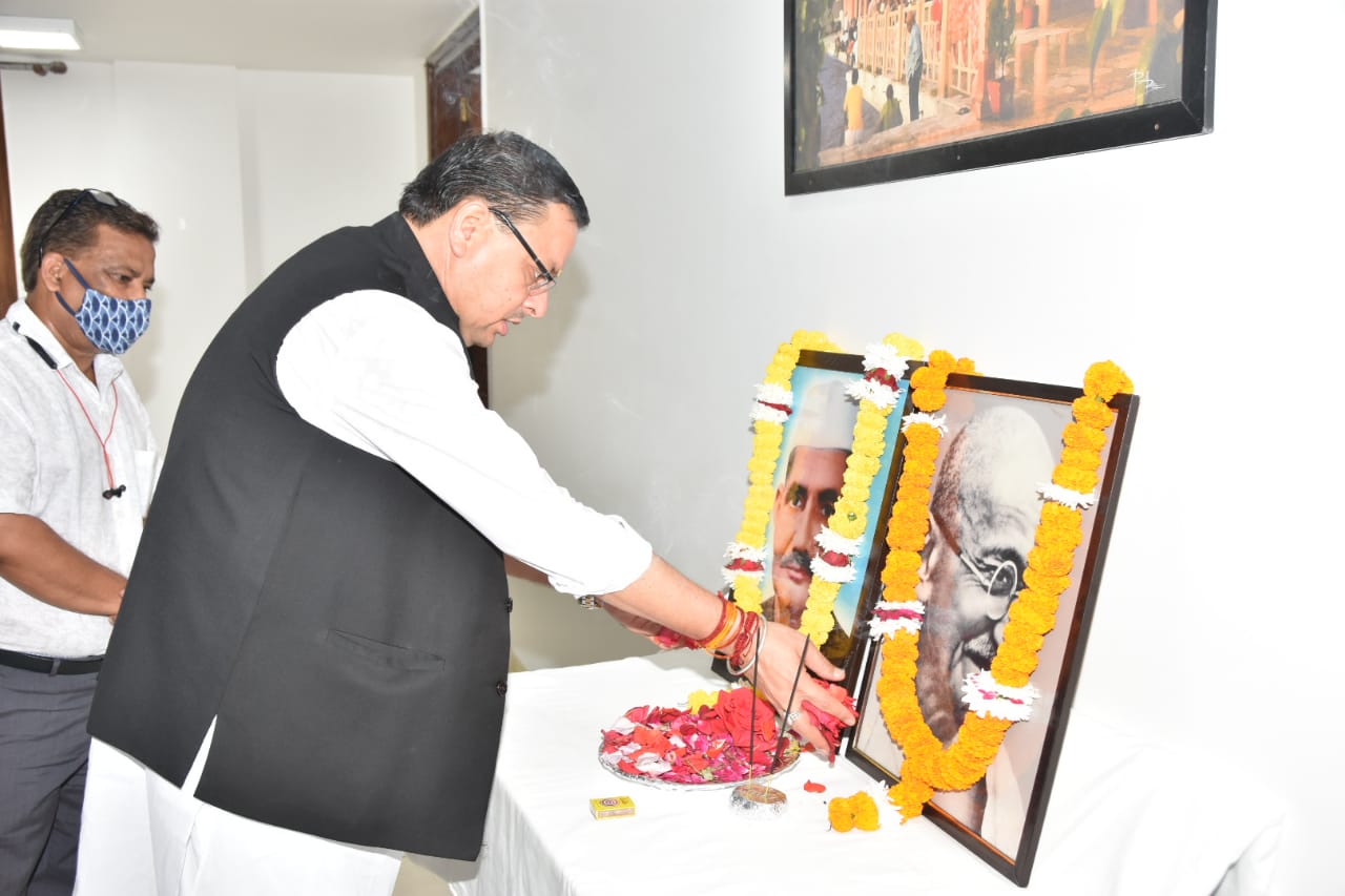 मुख्यमंत्री पुष्कर सिंह धामी ने मुख्यमंत्री आवास में राष्ट्रपिता महात्मा गांधी जी एवं पूर्व प्रधानमंत्री लाल बहादुर शास्त्री जी के चित्र पर श्रद्धासुमन अर्पित कर श्रद्धांजलि दी।