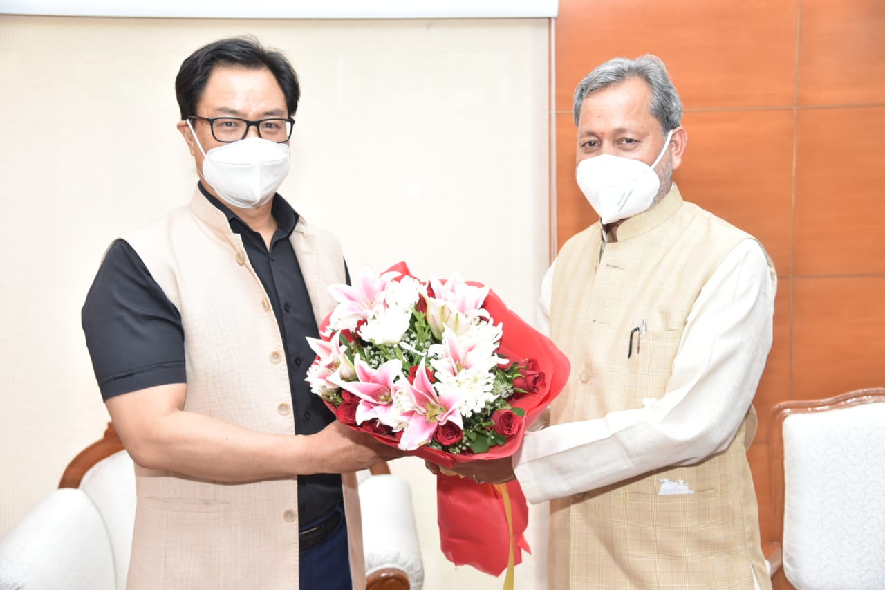 मुख्यमंत्री तीरथ सिंह रावत ने नई दिल्ली में केंद्रीय राज्य मंत्री (स्वतंत्र प्रभार) खेल एवं युवा मामले किरण रिजीजू से भेंट की। उत्तराखण्ड में खेलों के विकास पर विस्तार से विचार विमर्श किया गया। मुख्यमंत्री के अनुरोध पर केन्द्रीय मंत्री ने कहा कि खेलो इण्डिया योजना के अन्तर्गत खेलो इण्डिया स्टेट लेवल सेंटर एवं स्पोर्टस सांइस सेंटर का निर्माण स्पोर्टस कॉलेज, देहरादून में किया जायेगा।