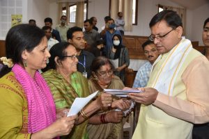 मुख्यमंत्री पुष्कर सिंह धामी ने मंगलवार को मुख्यमंत्री आवास स्थित मुख्य सेवक सदन में बड़ी संख्या में प्रदेश के विभिन्न क्षेत्रों से आये लोगों से भेंट की, तथा अपनी समस्याओं से अवगत कराया।