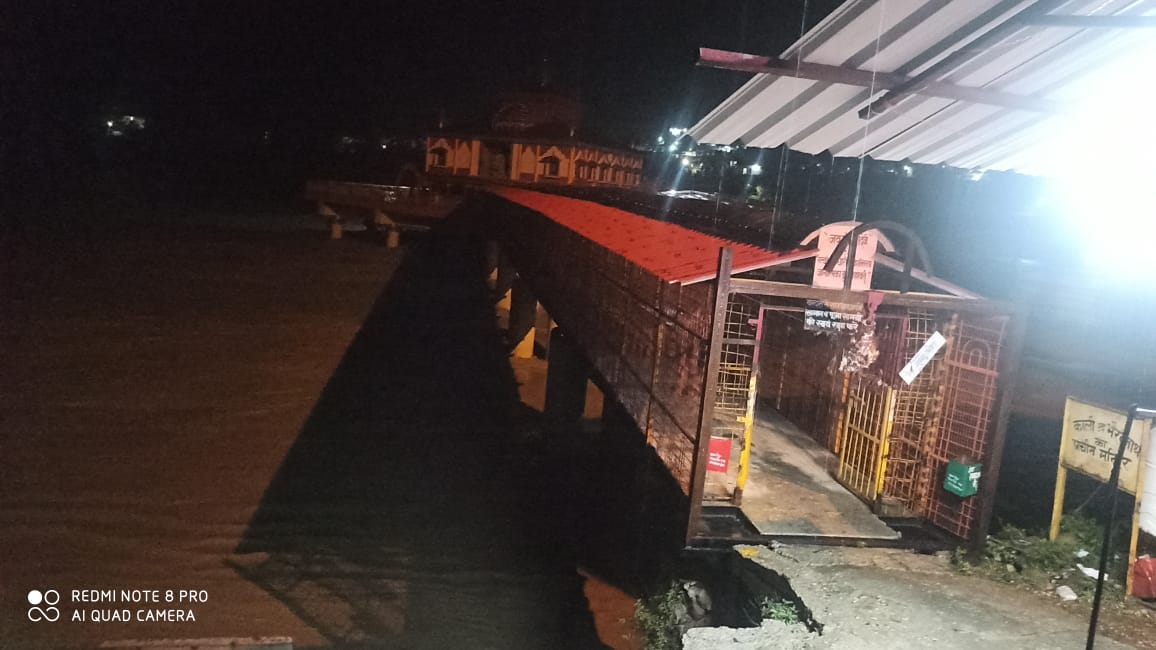 धारी देवी मंदिर के पिलर लगभग इसमें पूरे डूब गये हैं