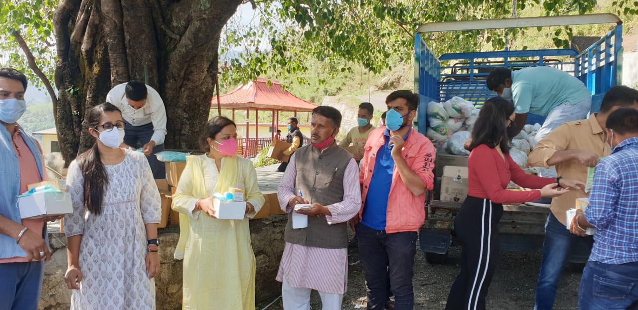 मसूरी विधान सभा के सरोना न्याय पंचायत के अंतर्गत सरोना गाँव में भाजपा के ‘सेवा ही संगठन’ अभियान के अंतर्गत १०५ परिवारों को राशन उपलब्ध कराया गया । देहरादून ज़िले के इस दूरस्थ गाँव में रह रहे परिवारों का जीवन कोरोना की वजह से काफ़ी प्रभावित हुआ है । आज ज़िला पंचायत सदस्य अस्थल, बीर सिंह चौहान, युवा मोर्चा की राष्ट्रीय मीडिया सह प्रभारी नेहा जोशी, युवा मोर्चा प्रवक्ता व त्रिकोण सॉसायटी की अध्यक्ष नेहा शर्मा, व प्रदेश सोशल मीडिया प्रभारी शेखर वर्मा ने ग्रामीणों को राशन के साथ साथ आयुष किट, मास्क, sanitiser, व इम्यूनिटी बूस्टर सिरप उपलब्ध कराए । बीर सिंह चौहान जी ने कहा कि सेवा जी संगठन अभियान के अंतर्गत हर एक भाजपा कार्यकर्ता निरंतर सेवा कार्यों में लगा है ताकि समाज के आख़िरी व्यक्ति तक राहत पहुँचा सके । नेहा जोशी ने बालाजी इन्वेस्टमेंट के अक्षत जैन व इशिता जैन का आभार व्यक्त किया जिन्होंने त्रिकोण सॉसायटी के माध्यम से इस पहल में उनका साथ दिया ।