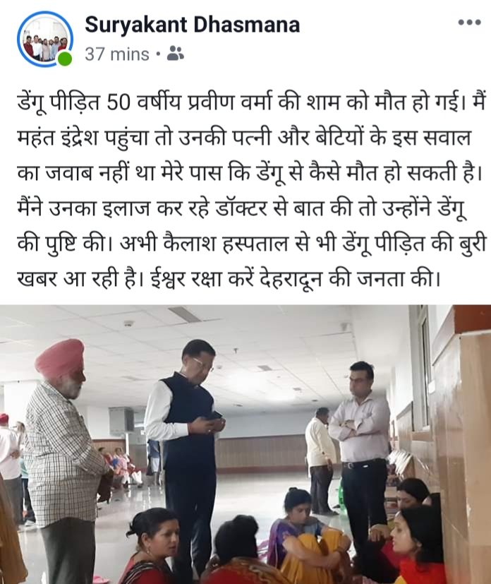जबकि उत्तराखण्ड के डीजी हेल्थ राजेश पांडये लगातार कह रहे है कि सही आंकड़े सिर्फ 1400 लोगो के ही है जिनमे डेंगू की पुष्टि हुई है जबकि मोत 4 लोगो की ।