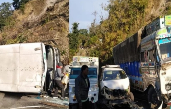 उत्तराखंड के पहाड़ मैं शुक्रवार को सुबह भीमताल-हल्द्वानी मोटर मार्ग पर कई वाहनों के आपस में टकराने से एक हादसा हो गया जो मीडिया को जानकारी मिली उसके अनुसार क्वराली के पास अन्य वाहन को बचाने के प्रयास में रोडवेज बस अनियंत्रित होकर सड़क पर पलट गई। ओर तभी बस से एक ट्रक,ओर कार व एक बाइक सवार भी टकरा गए