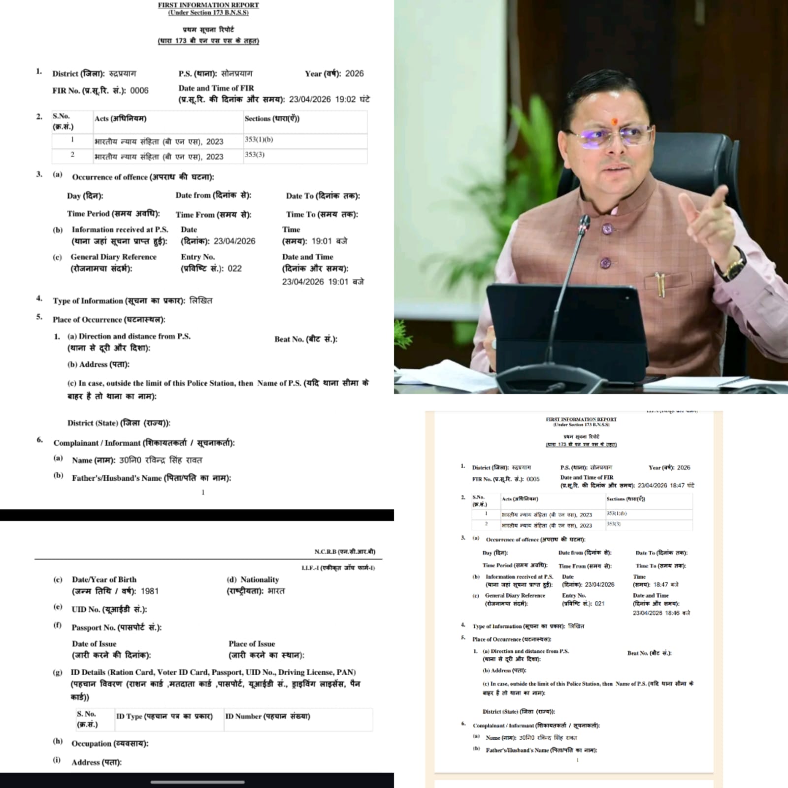 चारधाम यात्रा को लेकर सोशल मीडिया पर भ्रामक एवं तथ्यहीन सूचनाएं प्रसारित करने वाले तत्वों के विरुद्ध राज्य सरकार ने कार्रवाई और तेज कर दी है। पूर्व में दर्ज प्रकरणों के क्रम में जनपद रुद्रप्रयाग में दो और प्राथमिकी (FIR) दर्ज की गई हैं। इसके साथ ही ऐसे मामलों में अब तक कुल तीन FIR दर्ज की जा चुकी हैं।