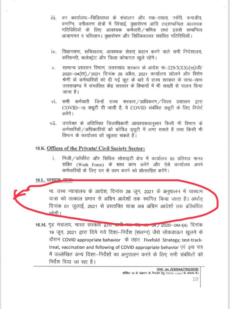 तीरथ सरकार की फ़जीहत कहे या किरकिरी कराने में अधिकारी कोई कोर-कसर नहीं रख छोड़ना चाह रहे! बता दे कि सोमवार सुबह हाईकोर्ट से चारधाम यात्रा शुरू करने को लेकर लचर स्वास्थ्य इंतज़ामात के चलते फटकार और फिर स्टे ऑर्डर की मार पड़ी। फैसला आने के बाद अधिकारियों ने नई SOP में एक जिलाई से चारधाम यात्रा का ऐलान कर साफ संदेश दिया कि तीरथ सरकार ने हाईकोर्ट के स्टे ऑर्डर को सुप्रीम कोर्ट में चुनौती देगी।