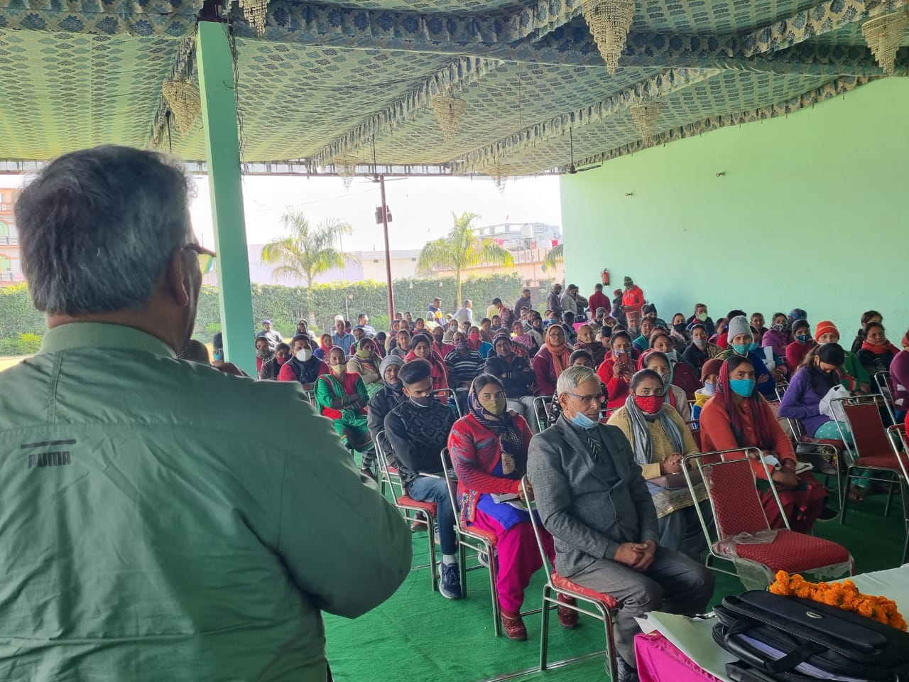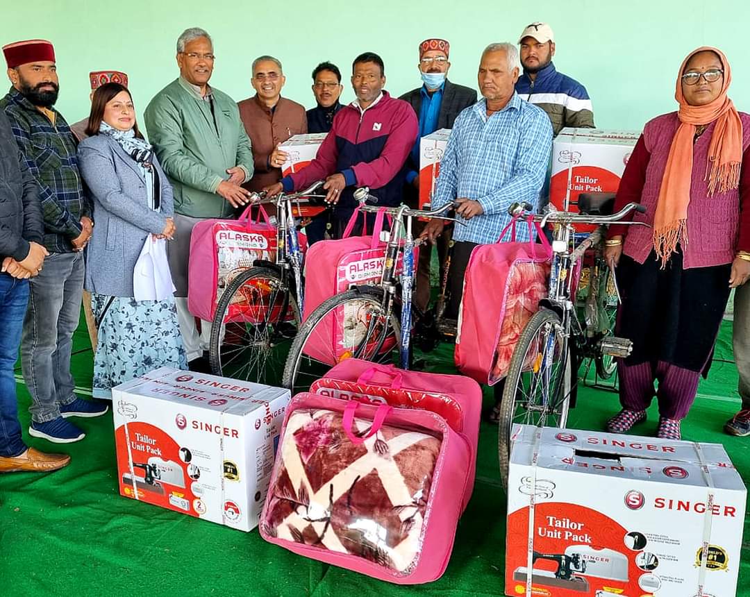 आज डोईवाला विधानसभा के वार्ड-100 नथुआवाला में ई-श्रम कार्ड वितरण कार्यक्रम में पूर्व मुख्यमंत्री व विधायक डोईवाला त्रिवेंद्र सिंह रावत के मुख्यातिथ्य में लगभग 200 से अधिक श्रमिक भाई-बहनों को एक किट के रूप में साइकिल, कंबल, सिलाई मशीन और छाता वितरित किए गए। गुज्जरोंवाली और नथुआवाला के लगभग 80 श्रमिक भाई और लगभग 120 श्रमिक बहनों को ये सामग्री वितरित की गई।